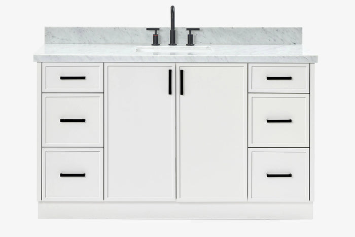 Ariel magnolia 61 in. rectangle sink vanity with 0.75 in. carrara white marble countertop in white