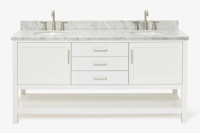 Ariel taylor (66"& 67") double rectangle sink vanity with marble countertop (0.75"& 1.5") edge.